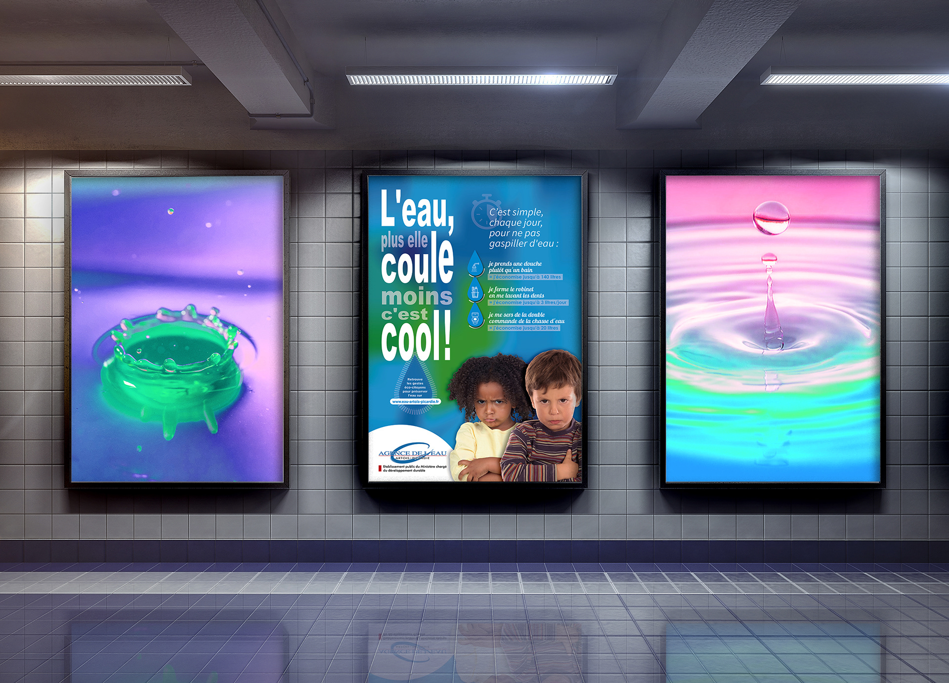 Campagne d'affichage pour L'Agence de l'Eau Artois-Picardie à destination des enfants.